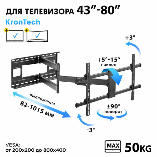 Кронштейн для телевизора на стену поворотный Godoo 43*-80* дюймов GD49-483XLD