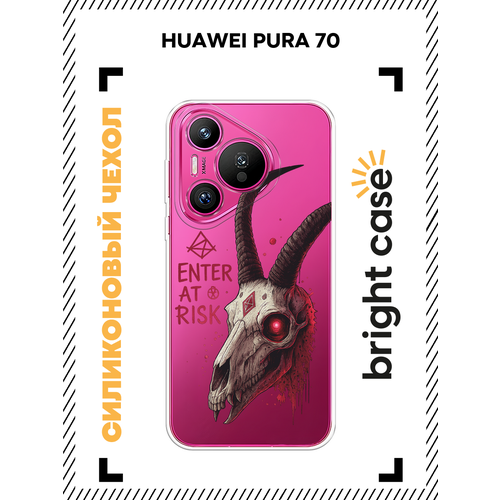 Чехол на Huawei Pura 70 / Хуавей Пура Р70 с принтом Кровавый череп с рогами, прозрачный