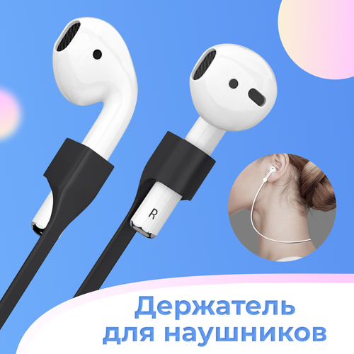 Силиконовый шнур держатель для наушников Apple Airpods 1 и 2 / Магнитное крепление на шнурке для беспроводных наушников Эпл Аирподс 1 и 2 / Черный