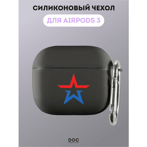 Силиконовый чехол DesignOnCase для беспроводных наушников AirPods 3, с карабином, матовый, Звезда РФ