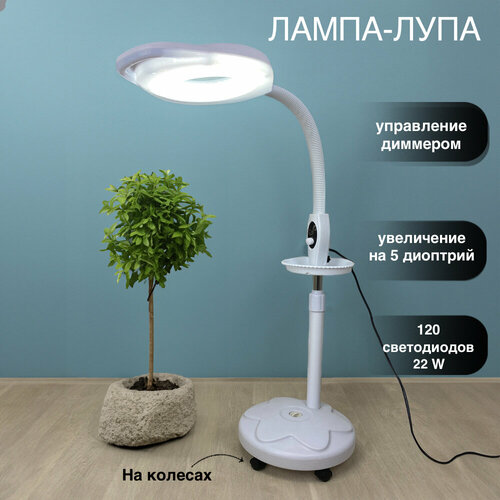 Лампа-лупа светодиодная напольная, регулировка яркости диммером