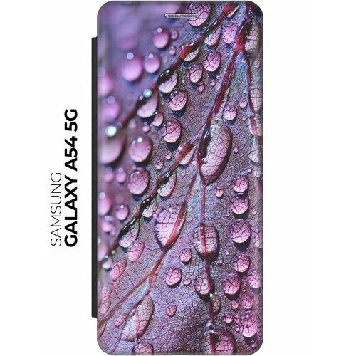 Чехол-книжка Лист в каплях на Samsung Galaxy A54 5G / Самсунг А54 черный