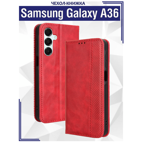 Чехол книжка для Samsung Galaxy A36 с магнитом и отделением под карты / Самсунг Галакси А36 (красная)