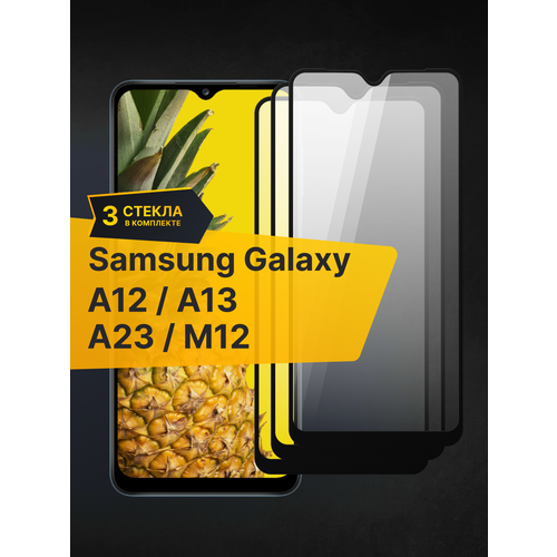 Комплект 3 шт. Противоударное защитное стекло для телефона Samsung Galaxy A12, A23 / Полноклеевое 3D стекло с олеофобным покрытием на смартфон Самсунг Галакси А12, А23