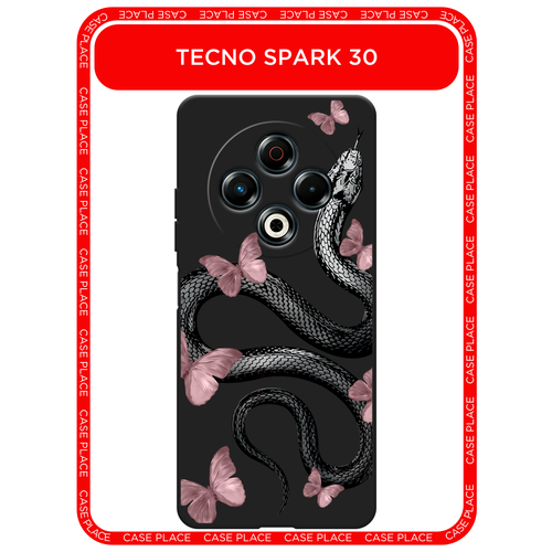 Черный матовый чехол на Tecno Spark 30 / Текно Спарк 30 с принтом Змейка с бабочками