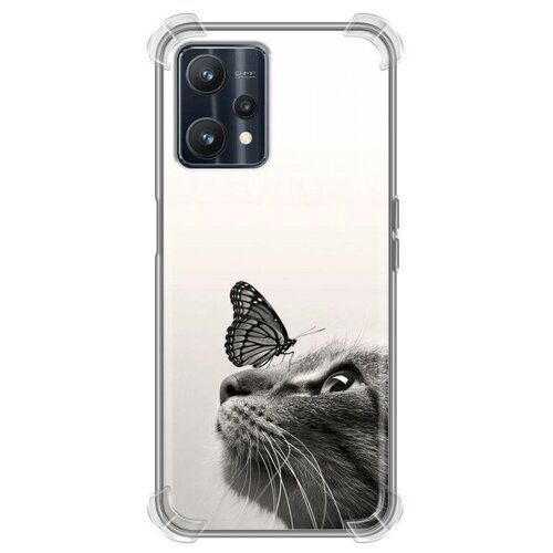Дизайнерский силиконовый с усиленными углами чехол для Реалме 9 Про / Realme 9 Pro Кот и бабочка