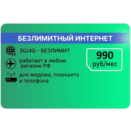 Безлимитный интернет в 3 и 4G Мегафон 990р по всей России