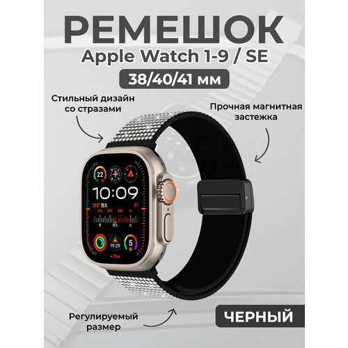 Металлический ремешок на Apple Watch 1-8, SE 38-40-41 мм / Браслет миланская петля для смарт часов Эпл Вотч 1, 2, 3, 4, 5, 6, 7, 8, СЕ / Черный