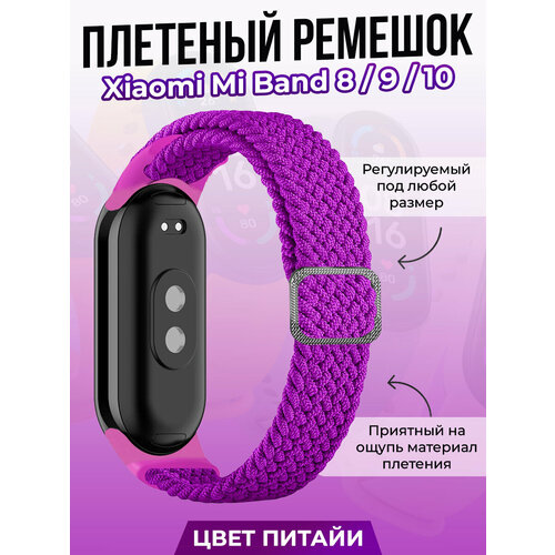 Плетеный ремешок для Xiaomi Mi Band 8/ 9, регулируемый под любой размер, цвет питайи