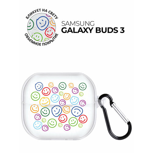 Чехол на Samsung Galaxy Buds 3 с принтом "Паттер смайлов" прозрачный