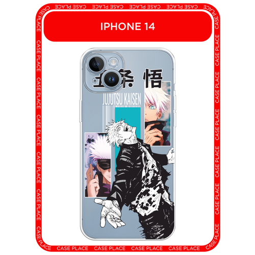 Чехол на Apple iPhone 14 / Айфон 14 с принтом Годжо Сатору white, прозрачный