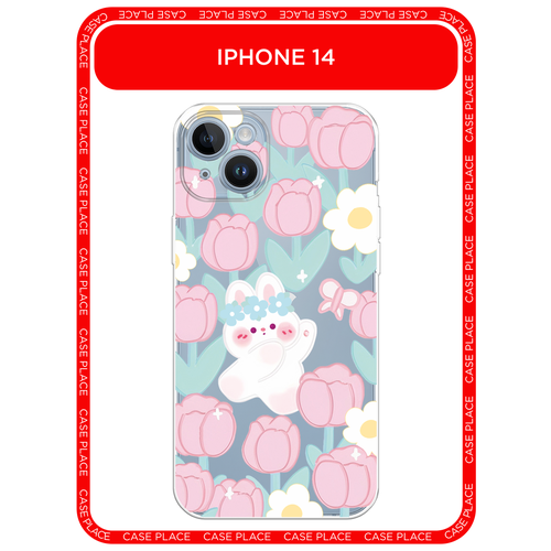 Чехол на Apple iPhone 14 / Айфон 14 с принтом Зайка в тюльпанах, прозрачный