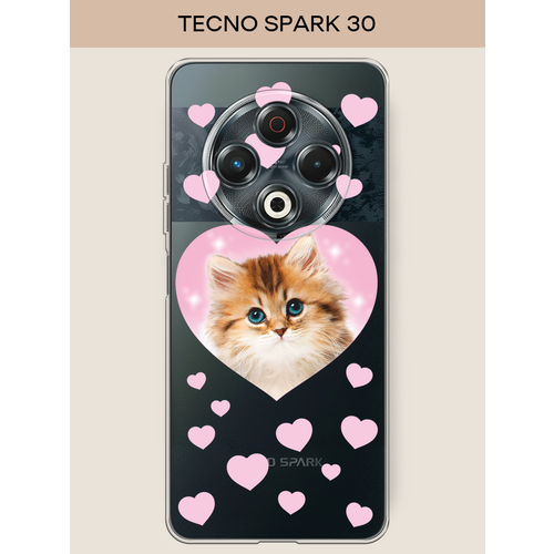 Чехол на Tecno Spark 30 / Текно Спарк 30 с принтом Котенок в сердце, прозрачный