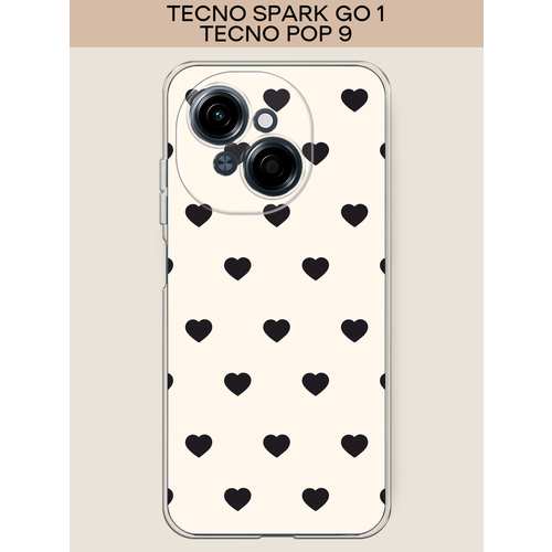 Силиконовый чехол "Черные сердечки на белом" на Tecno Spark Go 1/Pop 9 / Текно Спарк Go 1/Поп 9