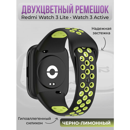 Двухцветный силиконовый ремешок для Redmi Watch 3 Lite, Watch 3 Active, черно-лимонный