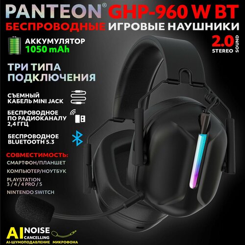 Игровые наушники PANTEON GHP-960, полноразмерные, складные, Surround Sound, USB 2.4 ГГц/Bluetooth 5.3