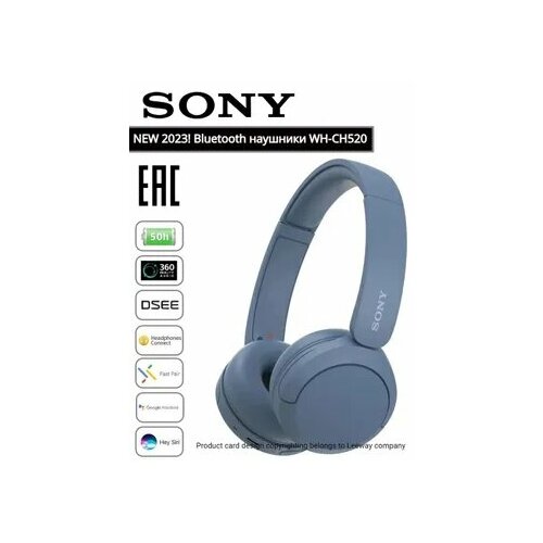 Sony Наушники беспроводные с микрофоном Sony WH-CH520, Bluetooth, USB Type-C, синий