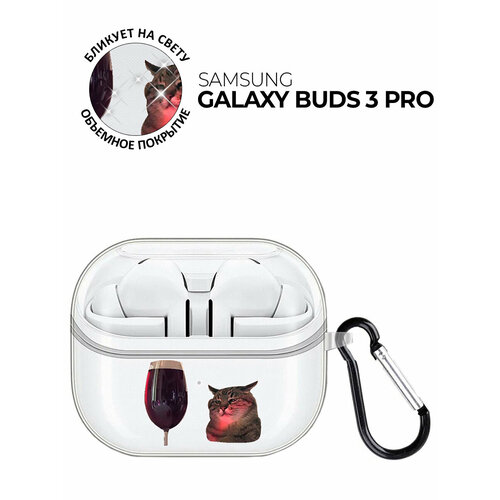 Чехол на Samsung Galaxy Buds 3 pro с принтом "Котик и вино" прозрачный