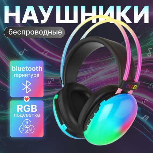 Наушники беспроводные большие, наушники детские, наушники накладные, с RGB подсветкой и микрофоном