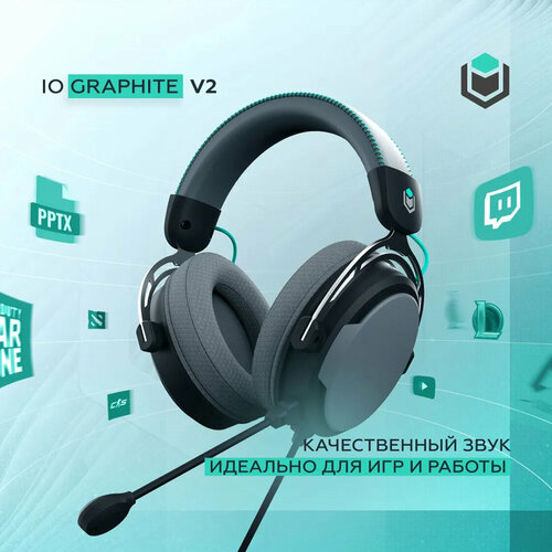 Наушники с микрофоном проводные IO by Red Square Graphite v2, 3.5 мм, 3.5 мм x2, черно-серый, бирюзовый