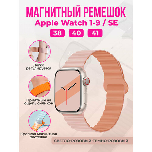 Магнитный силиконовый ремешок для Apple Watch 1-9 / SE (38/40/41 мм), светло-розовый-темно-розовый
