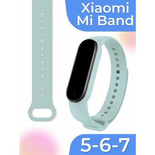 Силиконовый ремешок для фитнес трекера Xiaomi Mi Band 5, 6, 7 / Сменный спортивный браслет для смарт часов Сяоми Ми Бэнд 5,6,7 / Светло-голубой