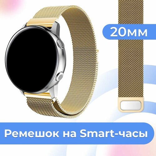 Металлический браслет для часов Samsung Galaxy Watch, Huawei, Honor, Amazfit, Xiaomi, Garmin, Fossil / 20 mm / Ремешок миланская петля / Золото