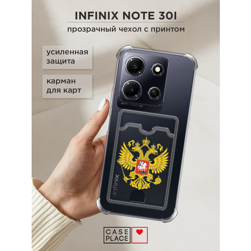 Чехол на Infinix Note 30i (Инфиникс Нот 30i) с картой и принтом Герб Россиии