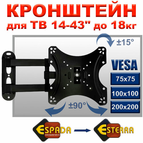 Кронштейн Ekr14f настенный поворотный для телевизора 14-43" до 18кг Espada/Esterra °