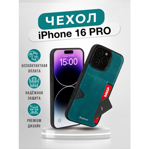 Чехол для iphone 16 pro с карманом для карт и стикеров из эко-кожи