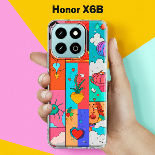 Силиконовый чехол на Honor X6B с принтом "Яркий узор" с прозрачными бортиками