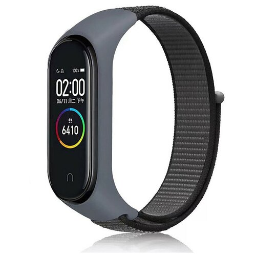 Нейлоновый ремешок для фитнес-браслета Xiaomi Mi Band 3/ Mi Band 4 / Mi Band 5 / Mi Band 6 / Mi Band 7, 20 серо-черный
