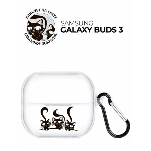 Чехол на Samsung Galaxy Buds 3 с принтом "Три кошечки" прозрачный