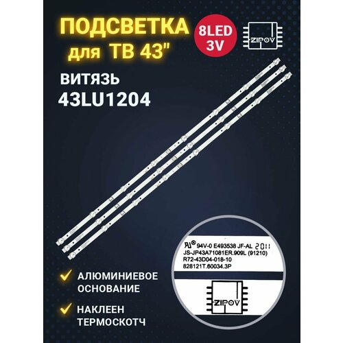 Подсветка для ТВ Витязь 43LU1204 HI VHIX-43U169MSY VHIX-43F169MSY DIGMA DM-LED43SQ20 маркировка JS-JP43A71081ER.909L R72-43D04-018-10 823mm 8led (комплект)
