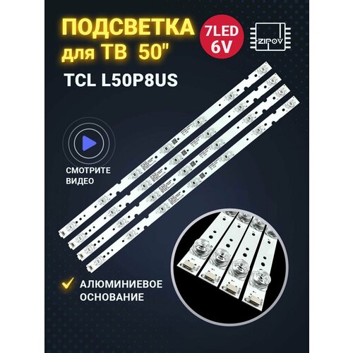 Подсветка для ТВ TCL L50P8US 50D6 50HR330M07A0 458mm 7led 6V (комплект 4 штуки)