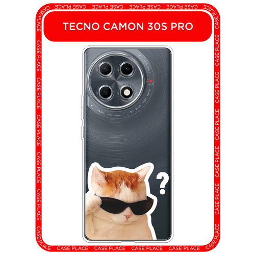Чехол на Tecno Camon 30S Pro / Текно Камон 30S Про с принтом Кот в очках, прозрачный