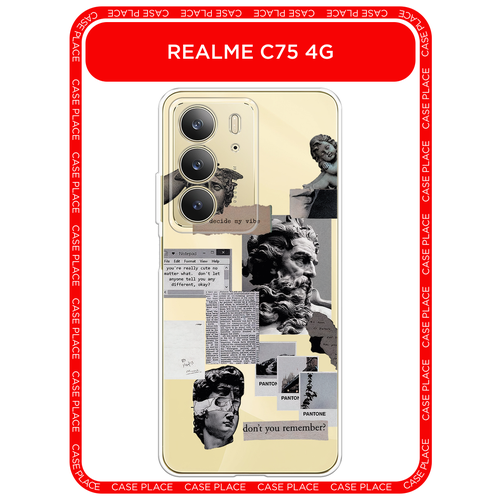 Чехол на Realme C75 4G / Реалми C75 4G с принтом Коллаж греческие скульптуры, прозрачный