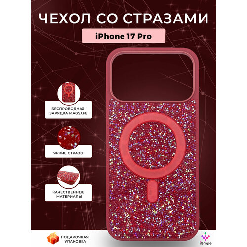 Чехол со стразами с MagSafe для iPhone 17 Pro, iGrape (Красный) / чехол на айфон 17 про