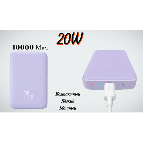 Внешний аккумулятор для телефона Baseus Power Bank Magnetic Mini Wireless Fast Charge 10000mAh 20W purle