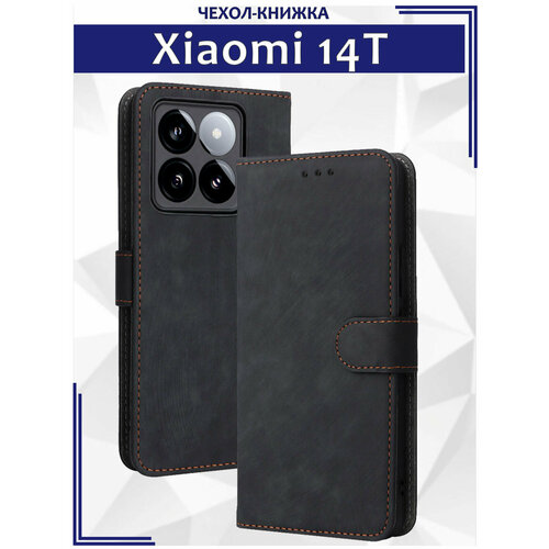 Чехол книжка для Xiaomi 14T c магнитной застежкой / Сяоми 14Т c отделением под карты (черная)