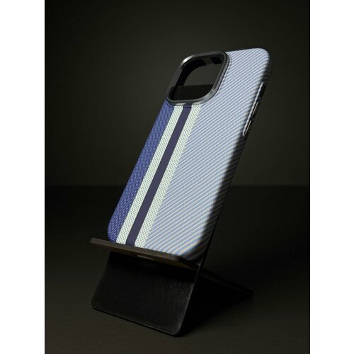 Чехол для Айфон 15 Про с МагСейф из Кевлара / Case 15 Pro с MagSafe Kevlar LUXO, Синий с полосой, карбоновый