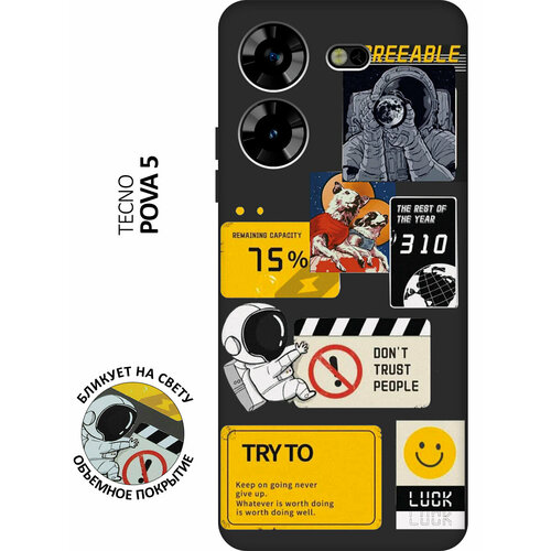 Матовый чехол Space Stickers для Tecno Pova 5 / Техно пова 5 с 3D эффектом черный