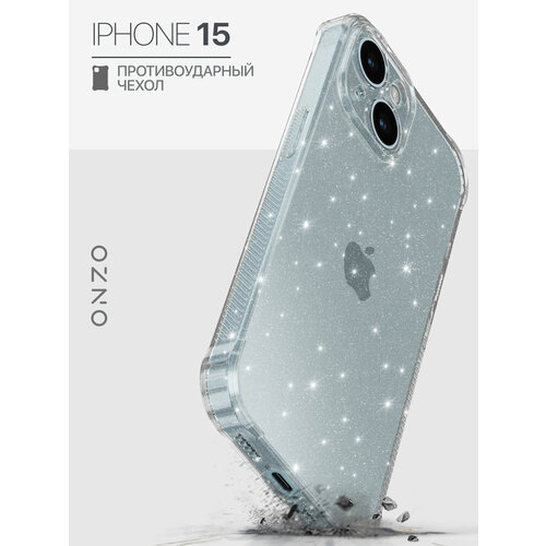 Прозрачный чехол на iPhone 15 / Айфон 15 бампер блестящий с усиленными углами