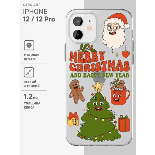 Чехол на iPhone 12, 12 Pro / Айфон 12, 12 Про прозрачный с принтом "Merry Christmas"