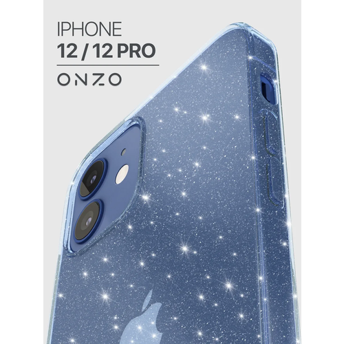 Блестящий чехол на iPhone 12 / iPhone 12 Pro / Бампер на Айфон 12 / Айфон 12 Про, синий прозрачный