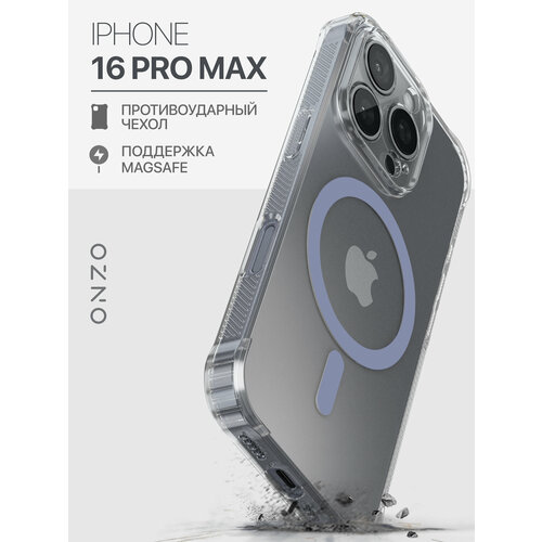 Противоударный чехол на iPhone 16 Pro Max с сиреневым мэгсэйф / Бампер на Айфон 16 Про макс прозрачный
