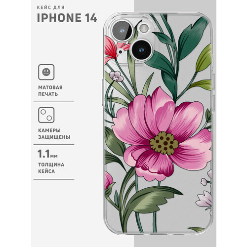 Защитный чехол на iPhone 14 / Айфон 14 прозрачный с рисунком "Pink flower"