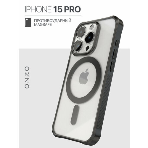 Противоударный чехол на iPhone 15 Pro с мэгсэйф / Бампер на Айфон 15 Про прозрачный с черными рамками
