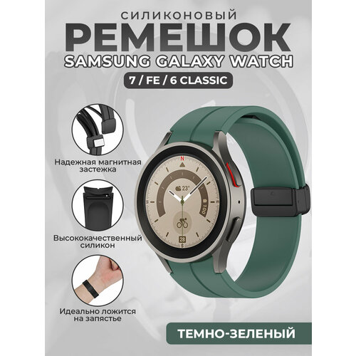Силиконовый ремешок для Samsung Galaxy Watch 7 / FE / 6 Classic, с черной магнитной застежкой, темно-зеленый