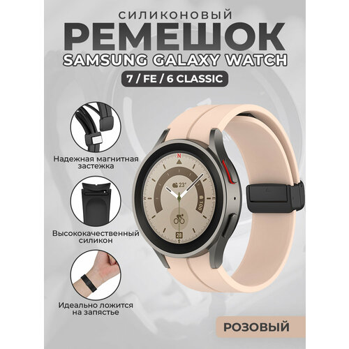 Силиконовый ремешок для Samsung Galaxy Watch 7 / FE / 6 Classic, с черной магнитной застежкой